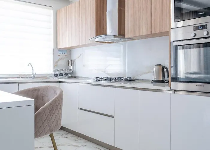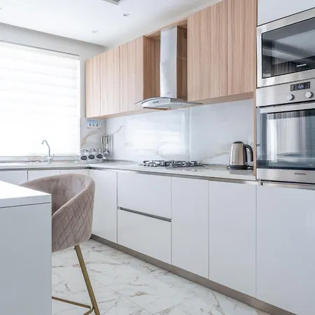 Modern & Luxurious Apartment - Prime Location pune la dispoziția oaspeților zonă de locuit, un balcon și o terasă, precum și confort modern, precum aer conditionat. Oaspeții pot folosi 2 băi. În plus, în baie veți găsi un uscător de păr și prosoape de baie.